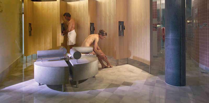 Le parcours du main romain irlandais se fait dans une sorte de labyrinthe un peu hermétique aux novices, se fait nu avec pour seul bagage une toge de ratine et des mules antidérapantes. Le bain est mixte, sauf pour la partie vestiaire, allez savoir pourquoi! La routine dure plus de deux heures, incluant une détente d'une trentaine de minutes à la fin. Les curistes passent du bain chaud au bain très chaud à la douche puis au vigoureux massage à la brosse et au savon. Ils se dirigent ensuite vers les bains d'eau minérale chaude avant de prendre une autre douche, de tremper dans un jacuzzi d'eau minérale, dans un autre bain d'eau minérale et de prendre une dernière douche.