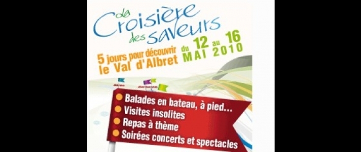Le Val d'Albret organise « La croisière des Saveurs » qui se déroulera du mercredi 12 au dimanche 16 mai 2010. Au cours des 5 jours du long week-end de l'ascension, les visiteurs sont attendu pour partir à la découverte des richesses du patrimoine culturel, ludique, et gastronomique du Val d'Albret. Au départ de Feugarolles, la croisière des saveurs remontera la Baïse pour faire escale, jour après jour, à Buzet, à Vianne, à Lavardac et enfin à Nérac, le 16 mai. Lire la suite →